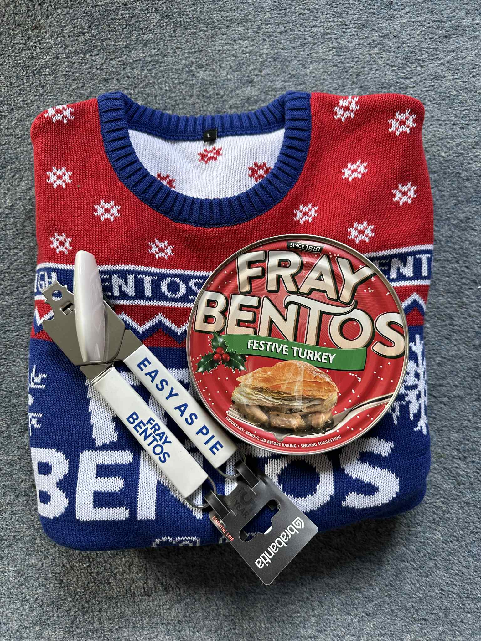 Every year I try to win a Christmas Jumper. Some years I have won multiple ones. Last year my husband particularly liked the Guinness one I won. I would have liked to have won the Gold Guinness jumper this year but instead I won this Fray Bentos one.
